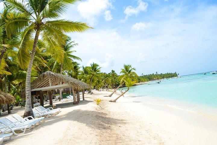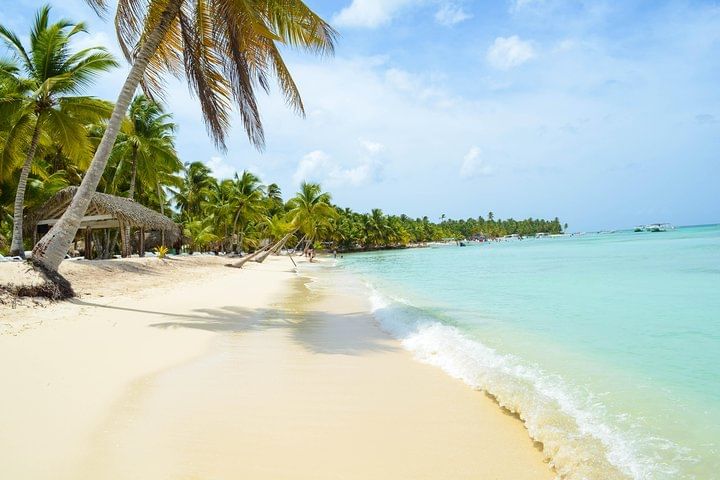 Abanico Beach. One of the best-known beaches on Isla Saona is where you can enjoy miles of white sand, warm, crystal-clear waters, palm trees and relax.