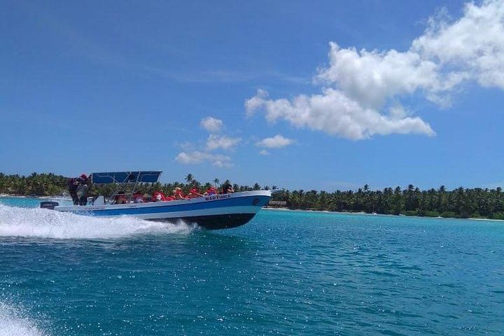 Discover a dynamic way of getting to know Isla Saona on an excursion sailing the sea by catamaran and speedboat while enjoying the sun and the sea breeze.